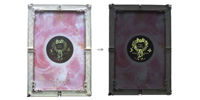 輝き続ける記念日レセプションを飾ったゴボは、クリスタル煌めく華やかなフォトフレームに額装してプレゼント。暗所で背面の蓄光シートが光るので、絵柄がくっきりと浮かび上がります。眩い思い出が、お二人の手元で輝き続けます。 |